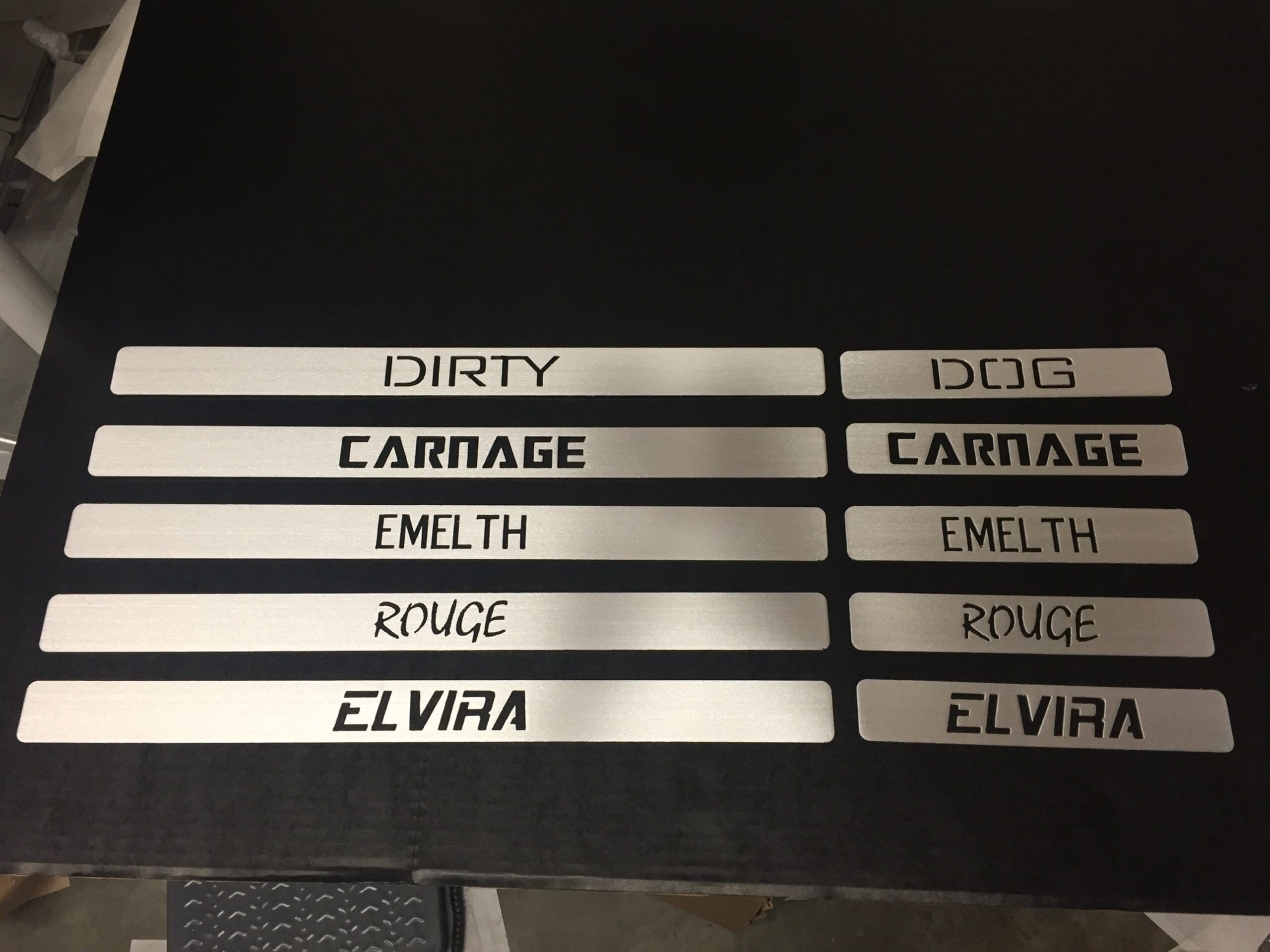 - Select front, rear, or both. Enter your custom text for each. If you’re only ordering fronts or rears, type “none” in the unused field labeled “Type Your Front/Rear Door Sill Plate Cut-Out Here.”