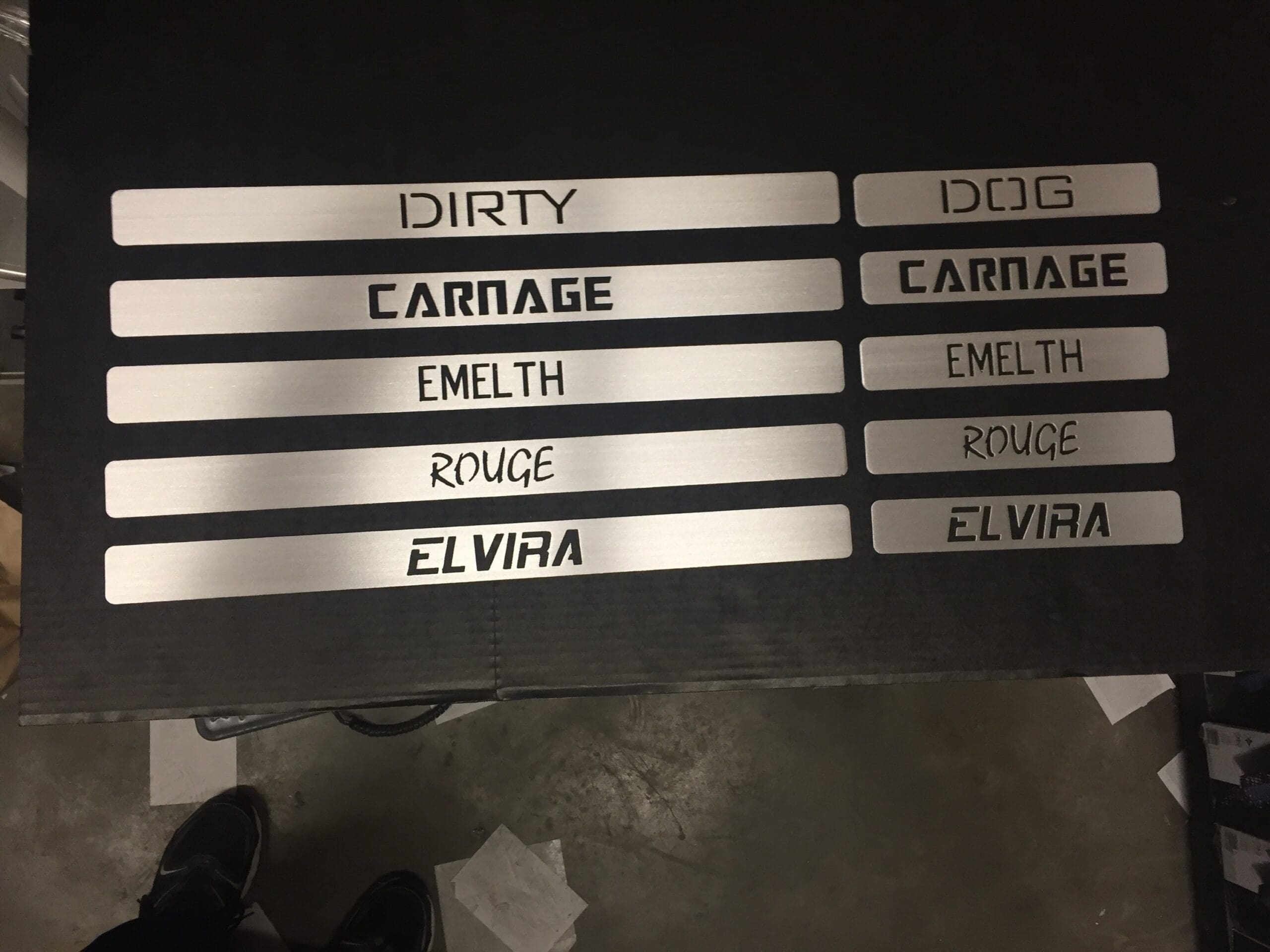 - Custom text cutouts: approx. 1″ tall letters with five font options.